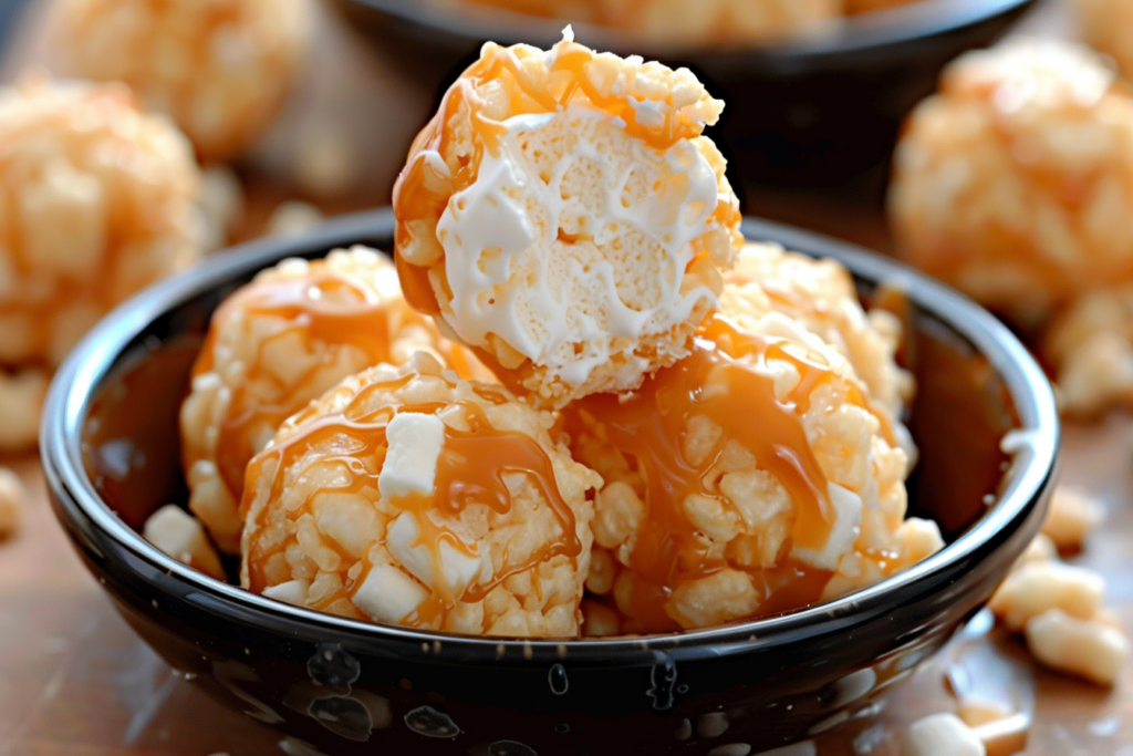 Caramel Marshmallow Rice Krispie Balls Ingredientes 3 tazas de arroz inflado (Rice Krispies) 1 taza de malvaviscos pequeños 1 taza de azúcar moreno 1/2 taza de mantequilla 1/2 taza de leche condensada 1/4 taza de jarabe de maíz 1 cucharadita de extracto de vainilla SIGUIENTE